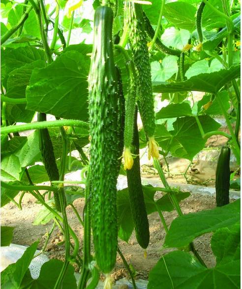 据测定,每生产1000千克黄瓜需从土壤中吸收N1.9—2.7千克,P2O50.8—0.9千克。K2O3.5—4.0千克。氮、磷、钾三者的吸收比例为1:0.4:1.6。黄瓜全生育期需要钾最多,其次是氮。