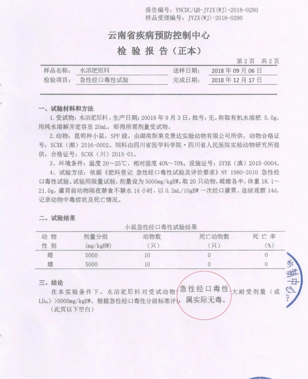 当前农业现状已经到必须要改变,却又很难改变的境地,化肥使用过量和土壤板结的矛盾,不用不行,越用越不行,农药使用过量和食品安全的矛盾,不用没产量,用了没质量。量宇植物之母提取于远古植物精华,是植物营养与代谢诱导剂,是从古植物残存组织中聚类提取的天然产物,没有任何化学合成,能全面呵护植物生长每一阶段,从种子萌发、幼苗、生长到成熟期均可使用。 为充分保障量宇植物之母的安全性,我司严格按照国家食品药品检验流程要求,先后与云南省疾病预防控制中心、中国科学院昆明动物研究所药物安全评价中心开展量宇植物之母急性经口毒性试验、慢性毒理性试验工作。 中国科学院昆明动物研究所药物安全评价中心参照《食品安全国家标准28天经口毒性试验》(GB15193.22-2014)、《饲料毒理学评价-亚急性毒性试验》(GB/T23179-2008)要求设计和实施,对SD大鼠连续28天灌胃给予量宇植物之母,恢复14天,各毒理学指标及组织病理学检查均未见明显与供试品潜在毒性相关的发现。