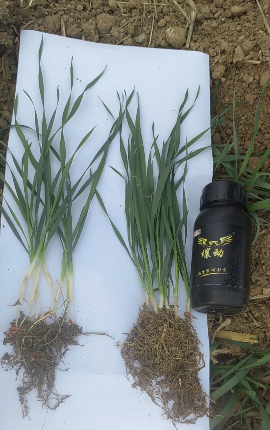 姜顺彬告诉我们,这两块几乎是同时播种的,相差不到一两天,你看差距怎么这么大?我今年开春花生就开始用这个壤动小黑瓶拌种,效果非常好,今年在小麦上拌种效果与没加壤动的,简直是土壤之别!不服不行。