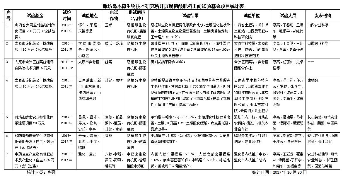 值此全国人民喜庆十九大的欢乐时刻,一个个“人与自然和谐共生、绿水青山就是金山银山、像对待生命一样对待生态环境、国家粮食安全、健康中国战略、绿色发展、环境问题、生态系统保护”等赋予新时代的绿色音符,让腐植酸人更加兴奋。让土肥和谐起来,让田园健康起来,让生态美好起来,加快腐植酸与大地母亲深情对话的步伐尤为重要。中国腐植酸工业协会自2017年10月20日起,组织编发“贯彻党的十九大绿色思想,开展腐植酸田间深情对话”系列报道,以激励腐植酸肥料行业自觉奋发向上。今日编发报道之五,来自潍坊岛本微生物技术研究所基金项目田间试验成果,以简表示之(一);同时编发来自潍坊昌邑地区生姜施用生物腐植酸肥料现场报道(二)。
