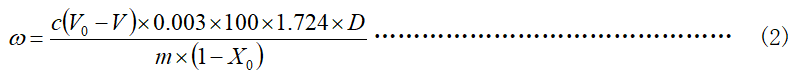 有机质含量ω以肥料的质量分数(%)表示,按式(2)计算: