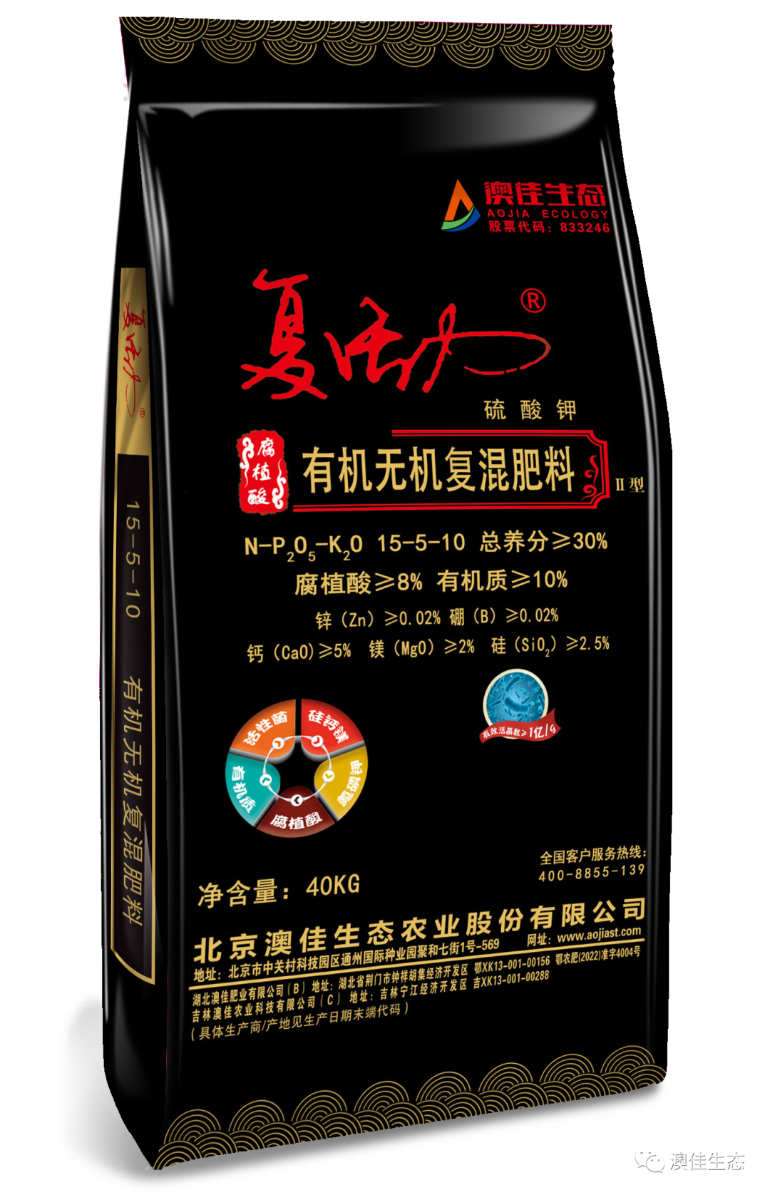 本品采用活性腐植酸与优选氮磷钾及中微量营养元素螫合工艺生产,养分均衡,有机无机协同增效减肥不减效。特别添加有效活性菌,改善滋养土壤,以菌抑菌;钙、镁、硅等中量元素添加,克服土壤酸化,减轻作物重茬障碍,增产增收。