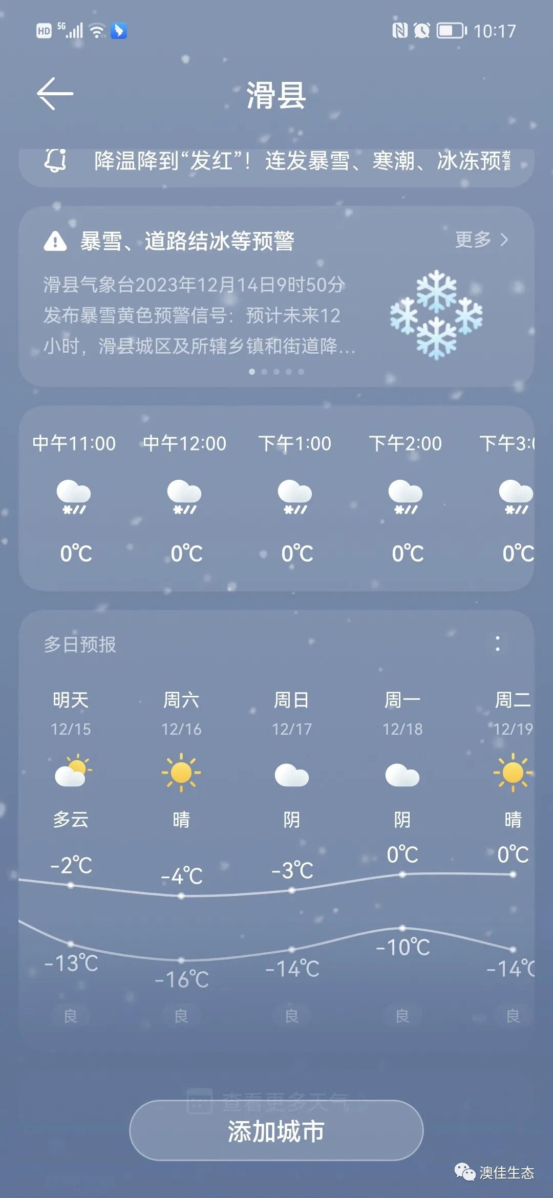 据中央台天气预报显示,未来三到五天,河南滑县等国家小麦主产县夜间最低气温将达零下17度,而山东,河北两省在12月15日至17日,最低气温预计会到零下20℃的极端低温。
